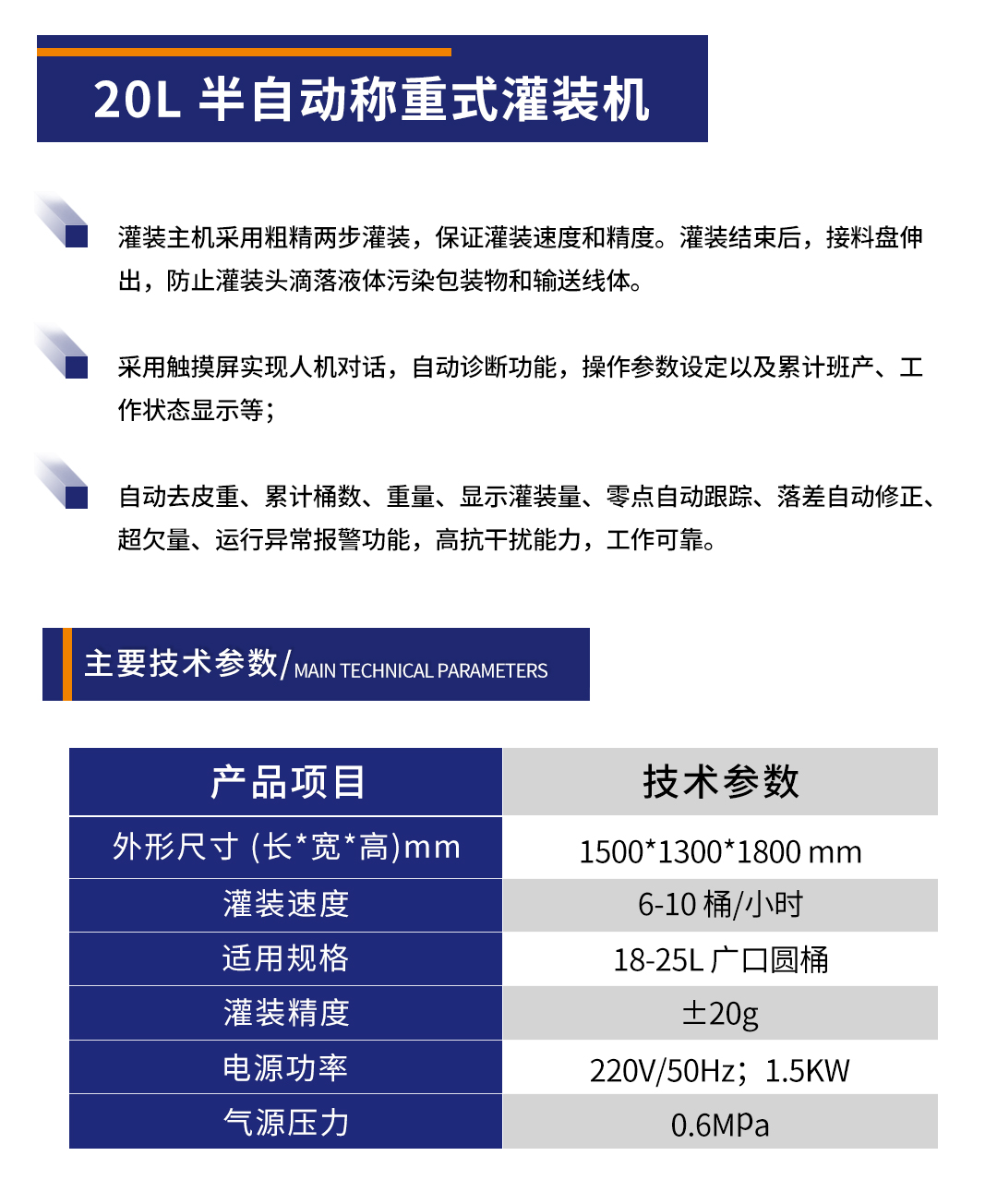 • 產(chǎn)品名稱(chēng):20L 半自動(dòng)稱(chēng)重式灌裝機