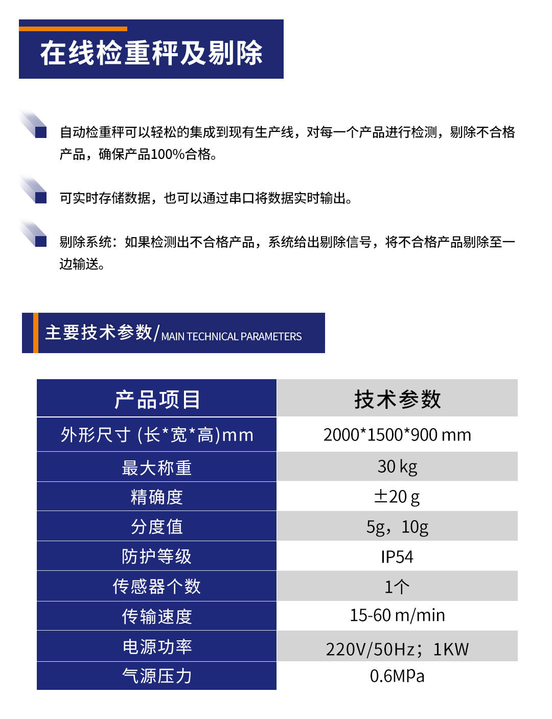 • 產(chǎn)品名稱(chēng):在線(xiàn)檢重秤及剔除