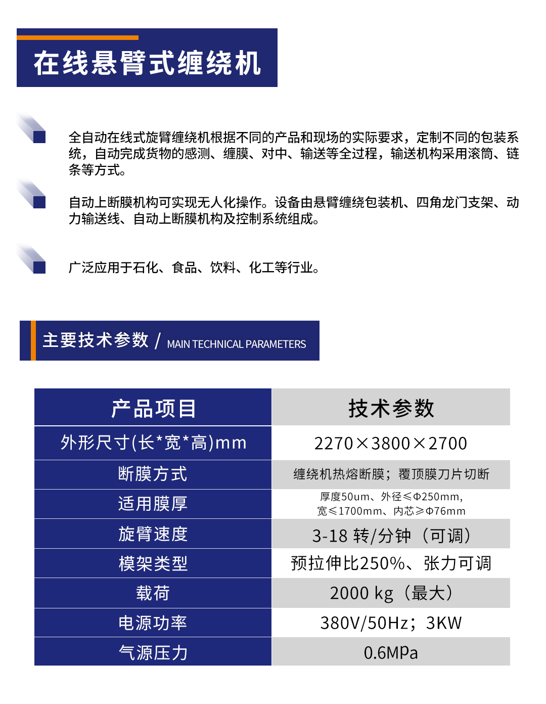 • 產(chǎn)品名稱(chēng):在線(xiàn)懸臂式纏繞膜機